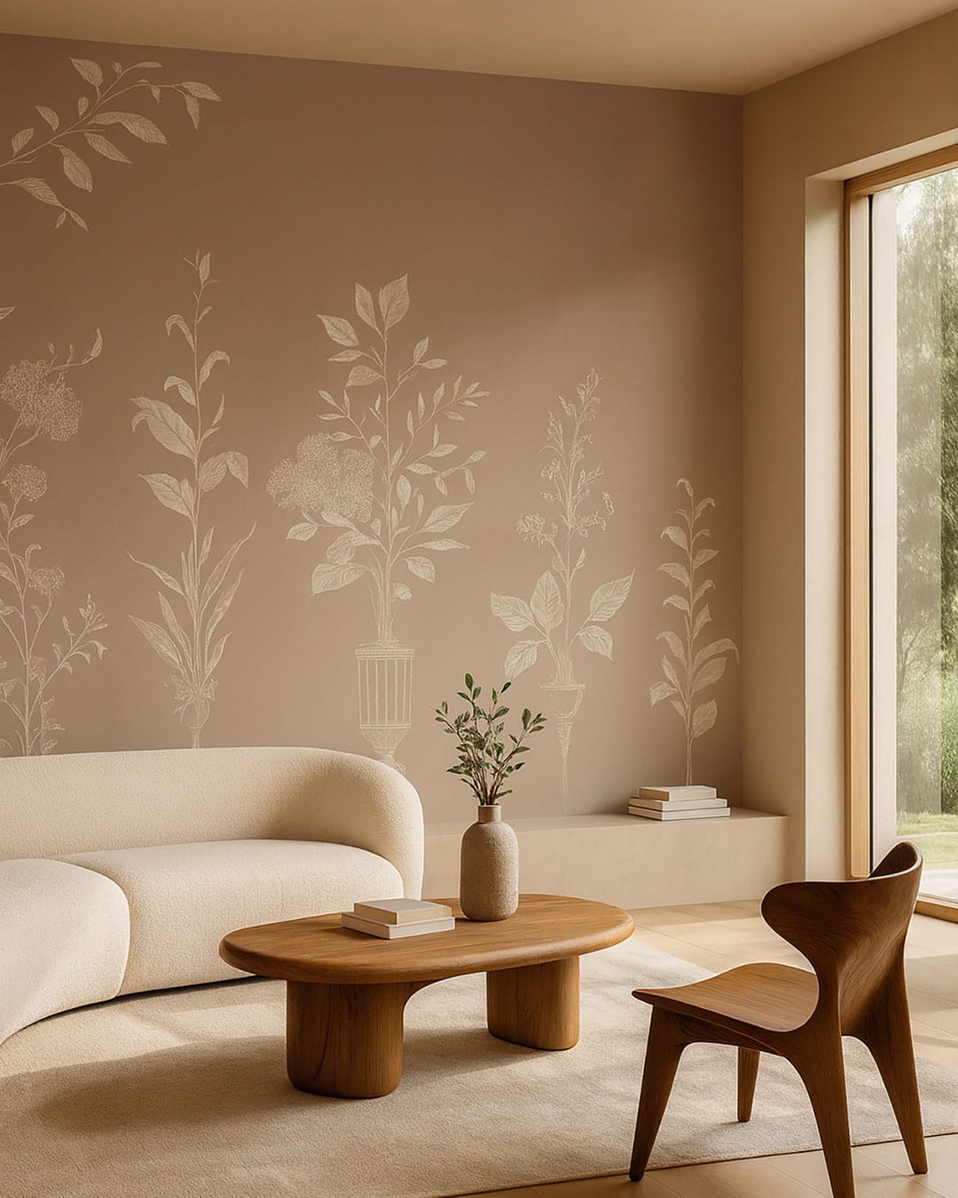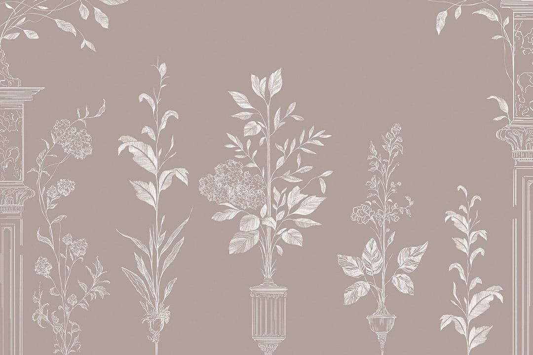 Palmetta creates an atmosphere of refined calm with its delicate botanical ornaments in soft taupe beige tones. The flowing details add structure and harmony, making this mural ideal for bedrooms, living rooms or home offices where serenity matters. Palmetta pairs beautifully with light wood furniture, cream textiles and minimal decorative accents. It brings warmth and balance into interiors without overwhelming the space. This design is a timeless choice for elegant natural interiors.