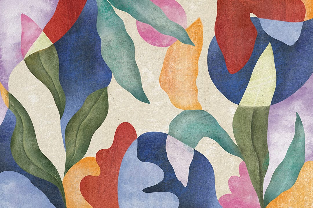 Wall mural bold abstract shapes in deep blues and earthy greens
