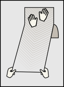 It’s best to work in pairs: one person guides the top and along the seam, while the other holds the opposite side away from the wall.